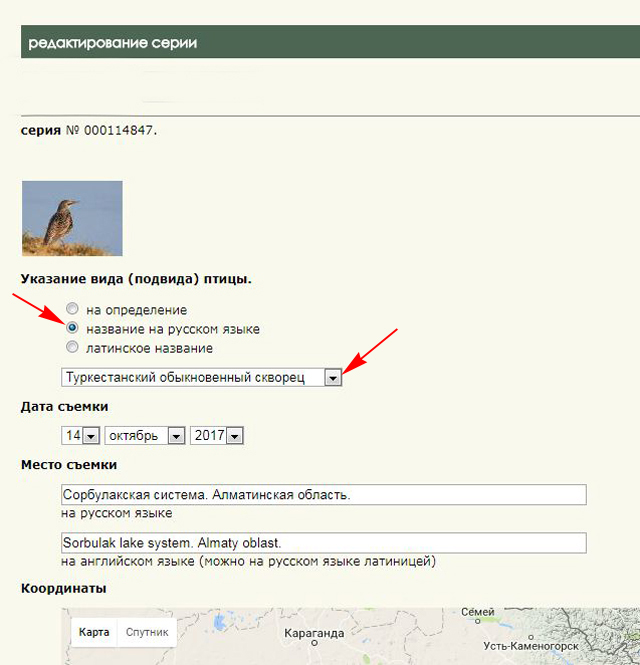 ΠΠ°ΠΆΠ½ΠΎ! Π ΠΎΠ΄Π½ΠΎΠΉ ΡΠ΅ΡΠΈΠΈ ΡΠ°Π·ΠΌΠ΅ΡΠ°ΡΡΡΡ ΡΠ½ΠΈΠΌΠΊΠΈ ΠΎΠ΄Π½ΠΎΠΉ ΠΏΡΠΈΡΡ Ρ ΡΠ°Π·Π½ΡΡ ΡΠ°ΠΊΡΡΡΠΎΠ² ΠΈΠ»ΠΈ ΠΏΡΠΈΡ ΠΎΠ΄Π½ΠΎΠ³ΠΎ Π²ΠΈΠ΄Π°/ΠΏΠΎΠ΄Π²ΠΈΠ΄Π°, ΡΠ΄Π΅Π»Π°Π½Π½ΡΠ΅ Π² ΠΎΠ΄ΠΈΠ½ Π΄Π΅Π½Ρ, Π² ΠΎΠ΄Π½ΠΎΠΉ Π³Π΅ΠΎΠ³ΡΠ°ΡΠΈΡΠ΅ΡΠΊΠΎΠΉ ΡΠΎΡΠΊΠ΅. Π¨Π°Π³ 2. Π£ΠΊΠ°ΠΆΠΈΡΠ΅ Π²ΠΈΠ΄ ΠΏΡΠΈΡΡ Π½Π° ΡΡΡΡΠΊΠΎΠΌ ΡΠ·ΡΠΊΠ΅. Π£ΠΊΠ°Π·Π°Π½ΠΈΠ΅ ΠΏΠΎΠ΄Π²ΠΈΠ΄Π° ΠΈ Π³ΠΈΠ±ΡΠΈΠ΄ΠΎΠ² Π΄ΠΎΡΡΡΠΏΠ½ΠΎ ΡΠΎΠ»ΡΠΊΠΎ Π½Π° Π»Π°ΡΠΈΠ½ΠΈΡΠ΅. ΠΡΠ»ΠΈ Π²Ρ ΡΠΎΠΌΠ½Π΅Π²Π°Π΅ΡΠ΅ΡΡ Π² ΠΎΠΏΡΠ΅Π΄Π΅Π»Π΅Π½ΠΈΠΈ Π²ΠΈΠ΄Π°, ΠΎΡΠΌΠ΅ΡΡΡΠ΅ Β«Π½Π° ΠΎΠΏΡΠ΅Π΄Π΅Π»Π΅Π½ΠΈΠ΅Β». ΠΠ°Π»Π΅Π΅, ΡΠΊΠ°ΠΆΠΈΡΠ΅ Π΄Π°ΡΡ ΡΡΠ΅ΠΌΠΊΠΈ; ΠΌΠ΅ΡΡΠΎ ΡΡΠ΅ΠΌΠΊΠΈ, ΠΎΠ±ΡΠ·Π°ΡΠ΅Π»ΡΠ½ΠΎ Π·Π°ΠΏΠΎΠ»Π½ΡΡ Π³ΡΠ°ΡΡ Π½Π° ΡΡΡΡΠΊΠΎΠΌ ΠΈ Π°Π½Π³Π»ΠΈΠΉΡΠΊΠΎΠΌ ΡΠ·ΡΠΊΠ°Ρ ;